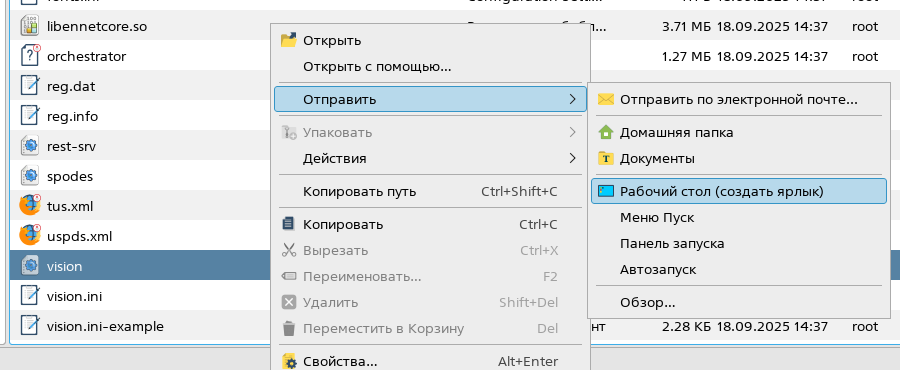 В дистрибутивах до 17-09-2025г опции выборочной (отдельной от серверной части) установки нет. При необходимости установки модуля Vision на сетевые АРМ производится полная установка пакета дистрибутива SCADA ЭНТЕК для ОС Linux с последующей остановкой серверной части.