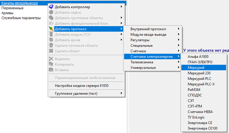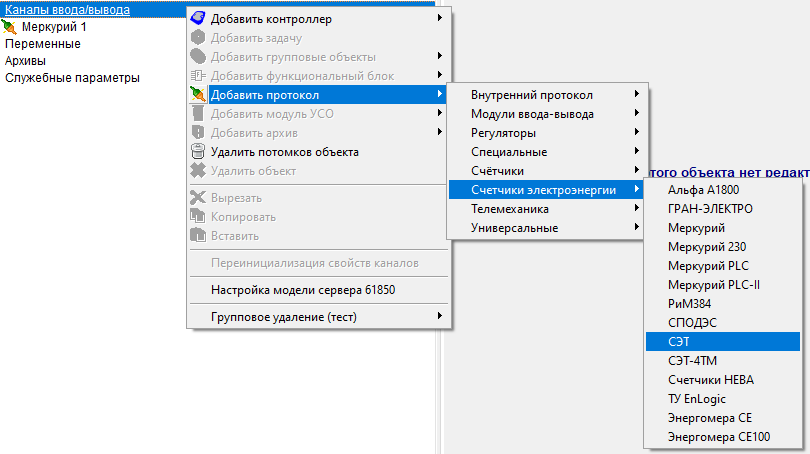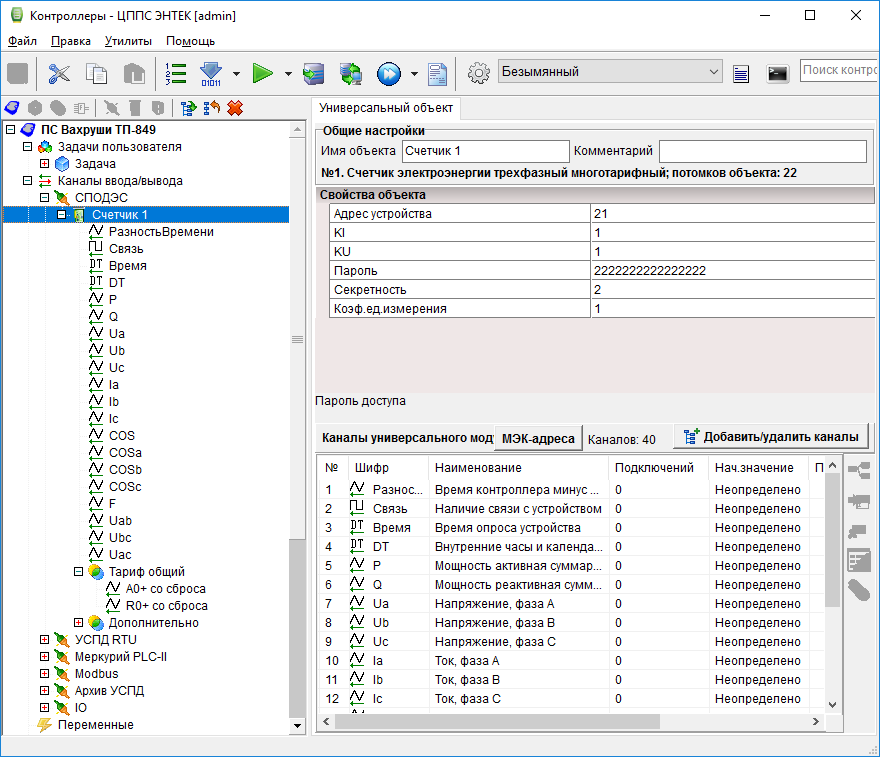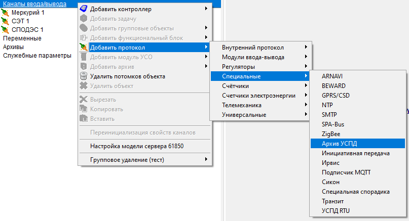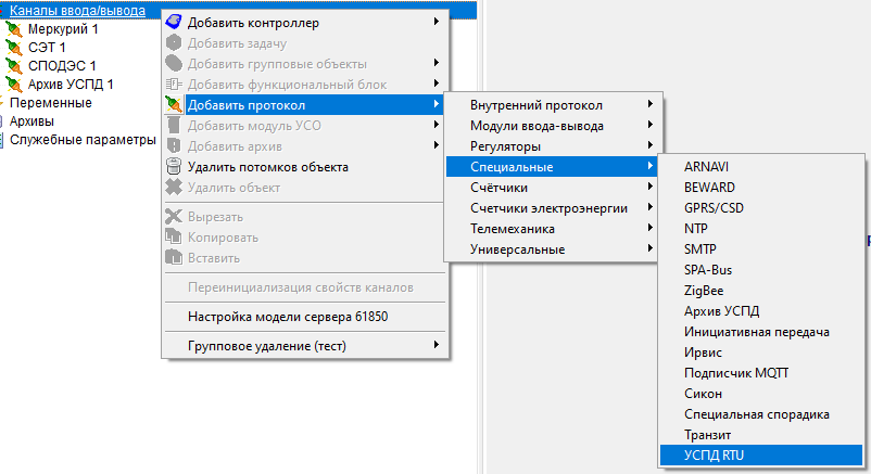 Добавить в контроллер в Каналы ввода/вывода протокол КП МЭК-104 (группа Телемеханика), и задать у него настройки IP-адресов ПУ (пункт управления, клиент МЭК-104):