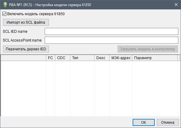 Далее необходимо, пока не начали опрос контроллера в ENLOGIC, открыть окно настройки модели сервера 61850 и установить соединение с контроллером: