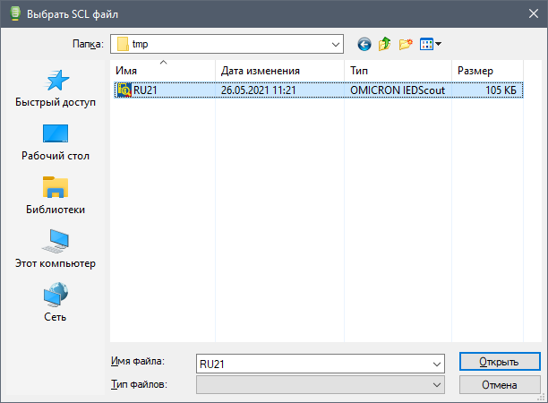 Теперь необходимо импортировать модель сервера, нажимаем кнопку Импорт из SCL файла, выбираем наш файл: