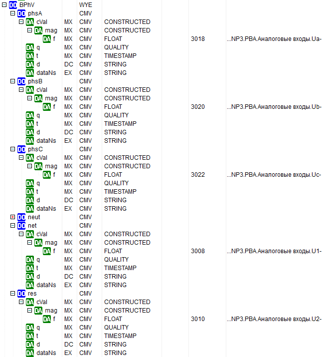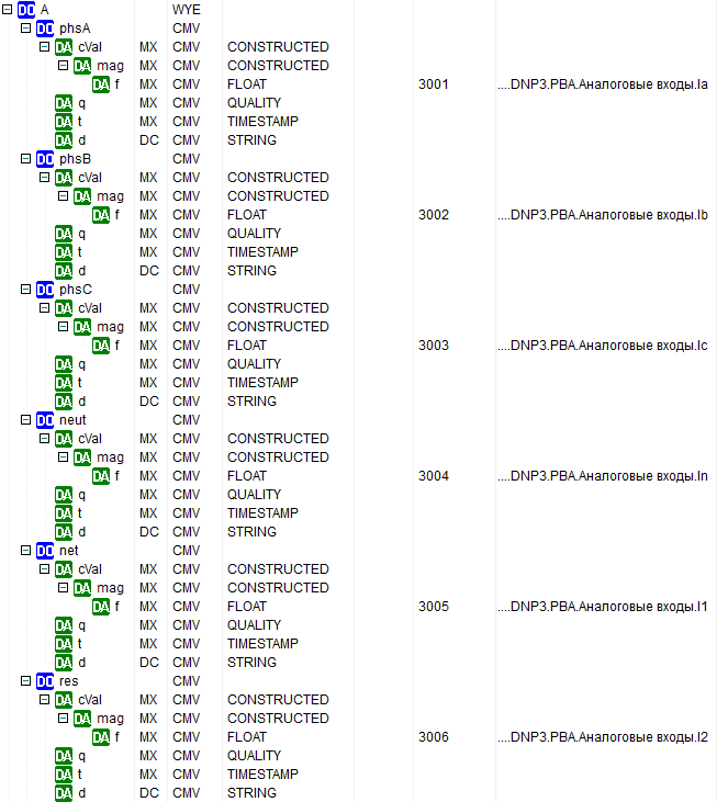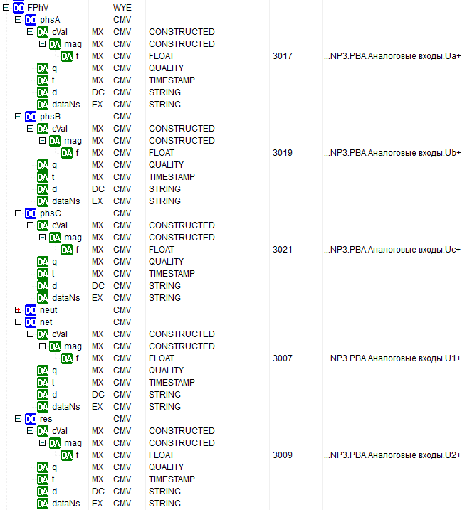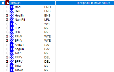 Привязку параметров ENLOGIC к атрибутам модели 61850 начнем с логического узла MMXU1 - трехфазные измерения: