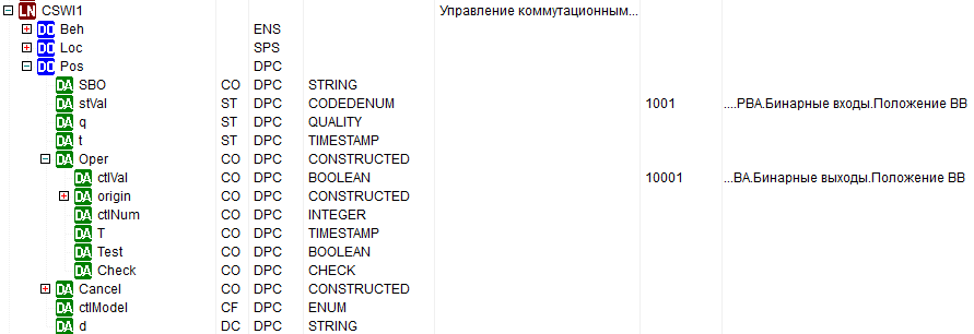 Для настройки функции контроля положения выключателя и управления выключателем необходимо сделать привязку в логическом узле CSWI: