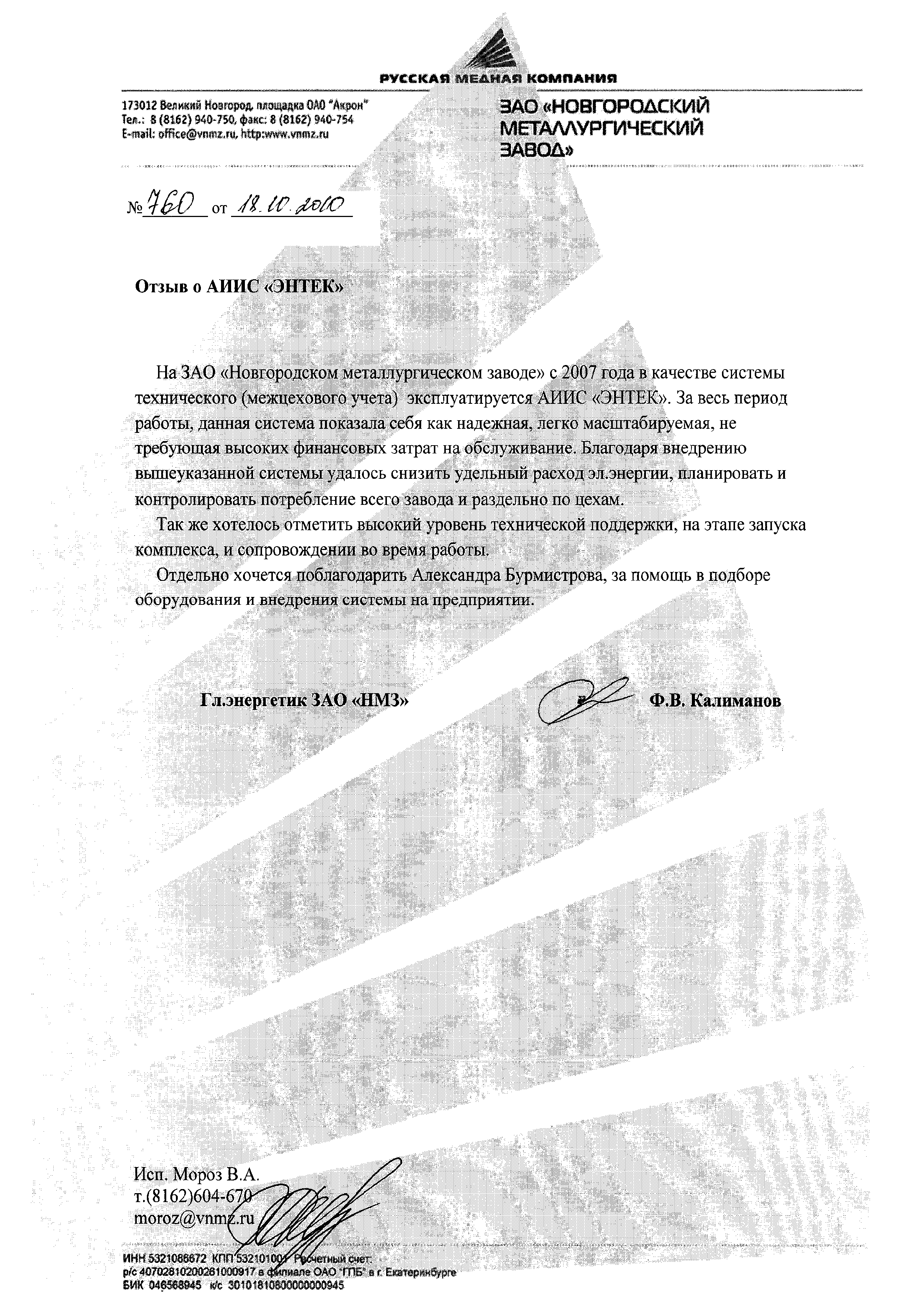 Рекомендательное письмо НМЗ