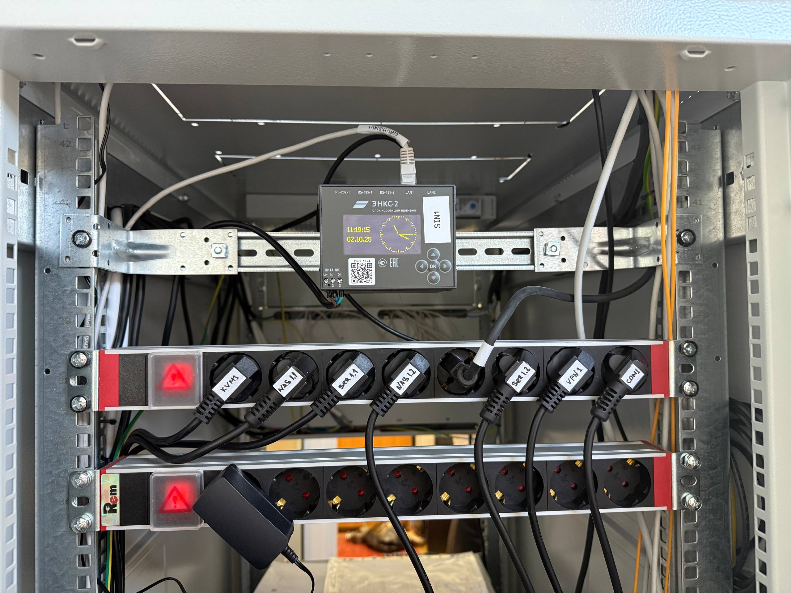 - Блоки распределения питания (PDU). Распределяют питание по всему оборудованию в шкафу.