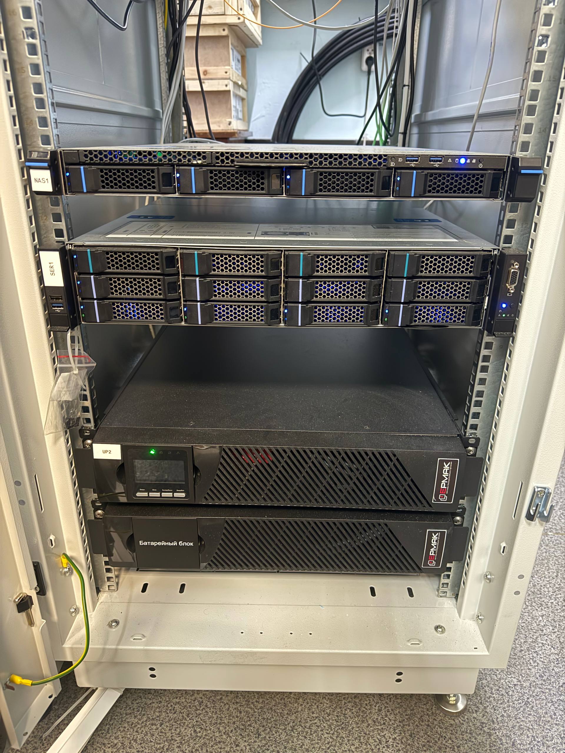 В серверном шкафу находиться оборудование и программное обеспечение: